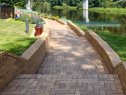 یک مسیر ورودی بتنی مُهر و موم شده شیک با روکش مقاوم در برابر آب و هوا و لبههای تمیز.
